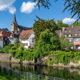 neckar, fluss, skyline, panora … aurant skyline und aus